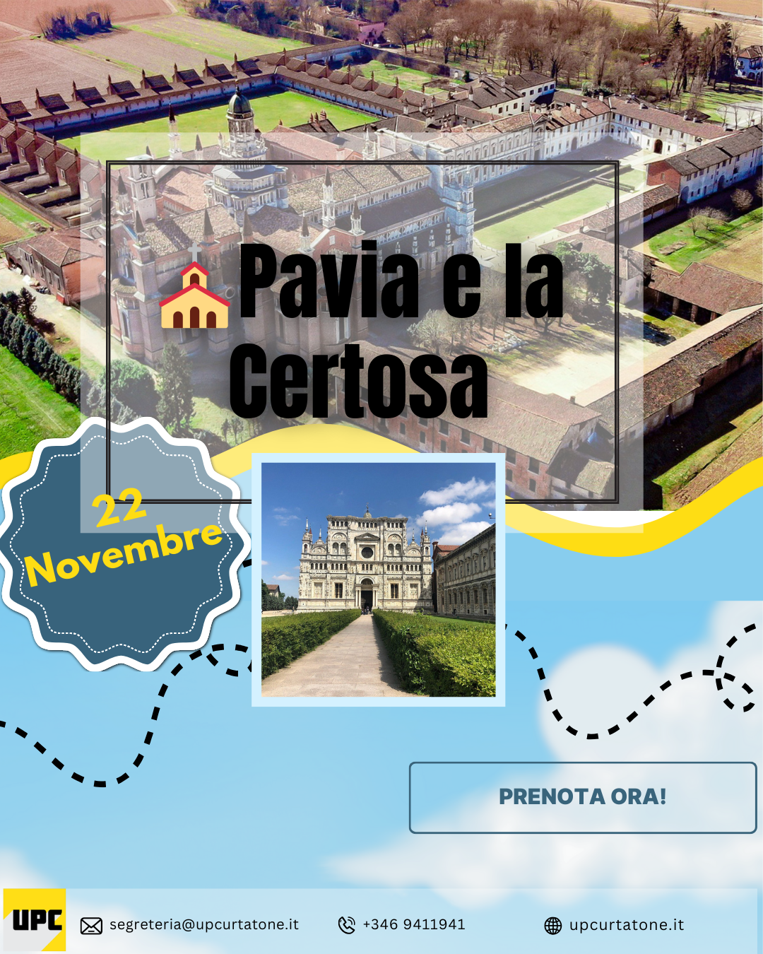 Ritrovo dei partecipanti a Curtatone alle ore 7.00, sistemazione in pullman e partenza per Pavia.