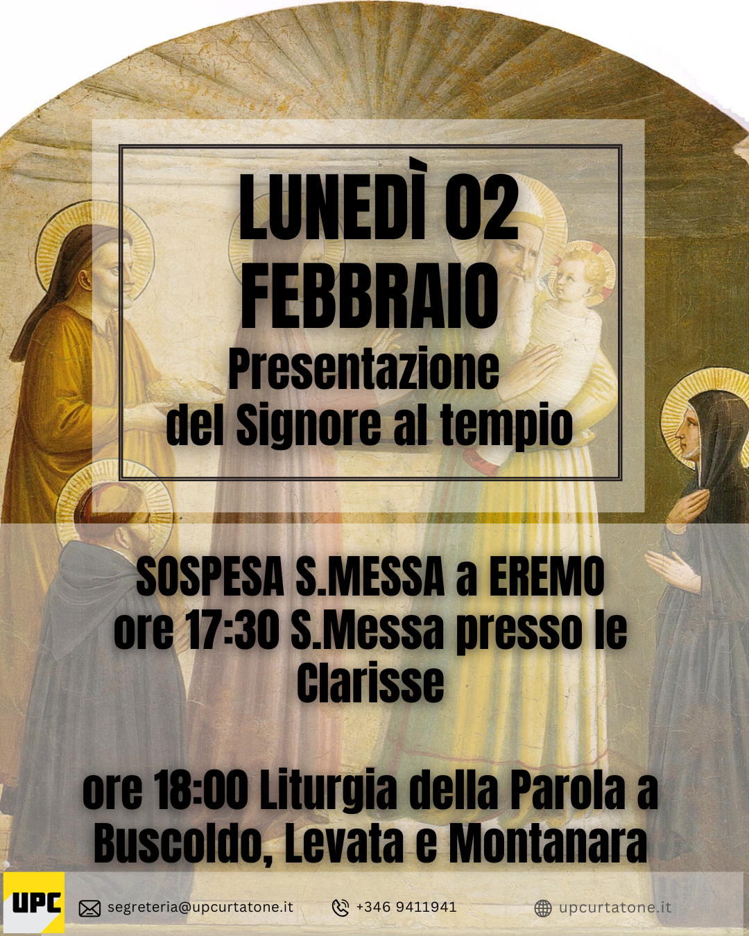 - Ore 18:00 a Buscoldo, Levata, Montanara e San Silvestro: Solo rito della Benedizione.