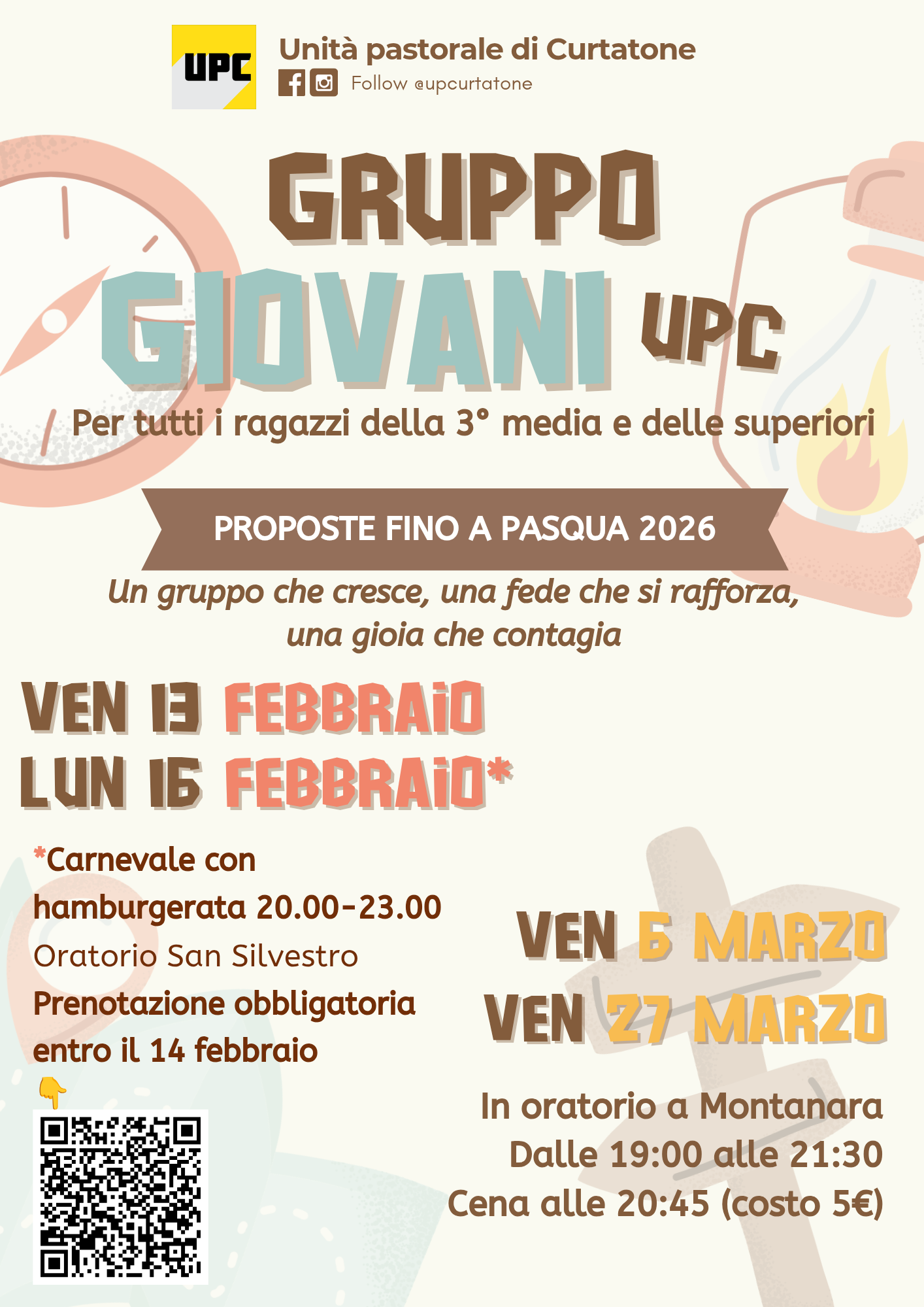 L'Unità Pastorale di Curtatone è lieta di presentare il nuovo programma dedicato a tutti i ragazzi dalla terza media fino alle scuole superiori.